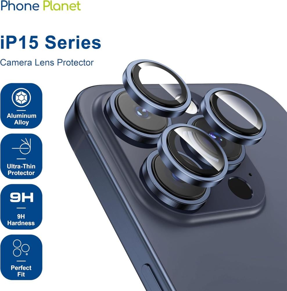 عدسات حماية كاميرا ايفون 15 برو/ برو ماكس تيتانيوم أزرق - Phone Planet