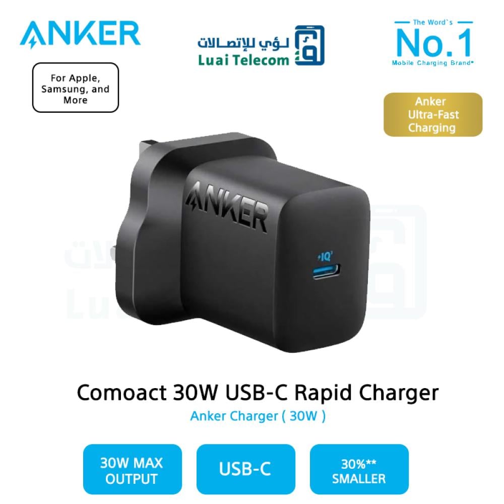 شاحن جداري انكر بقوة 30 واط - اسود